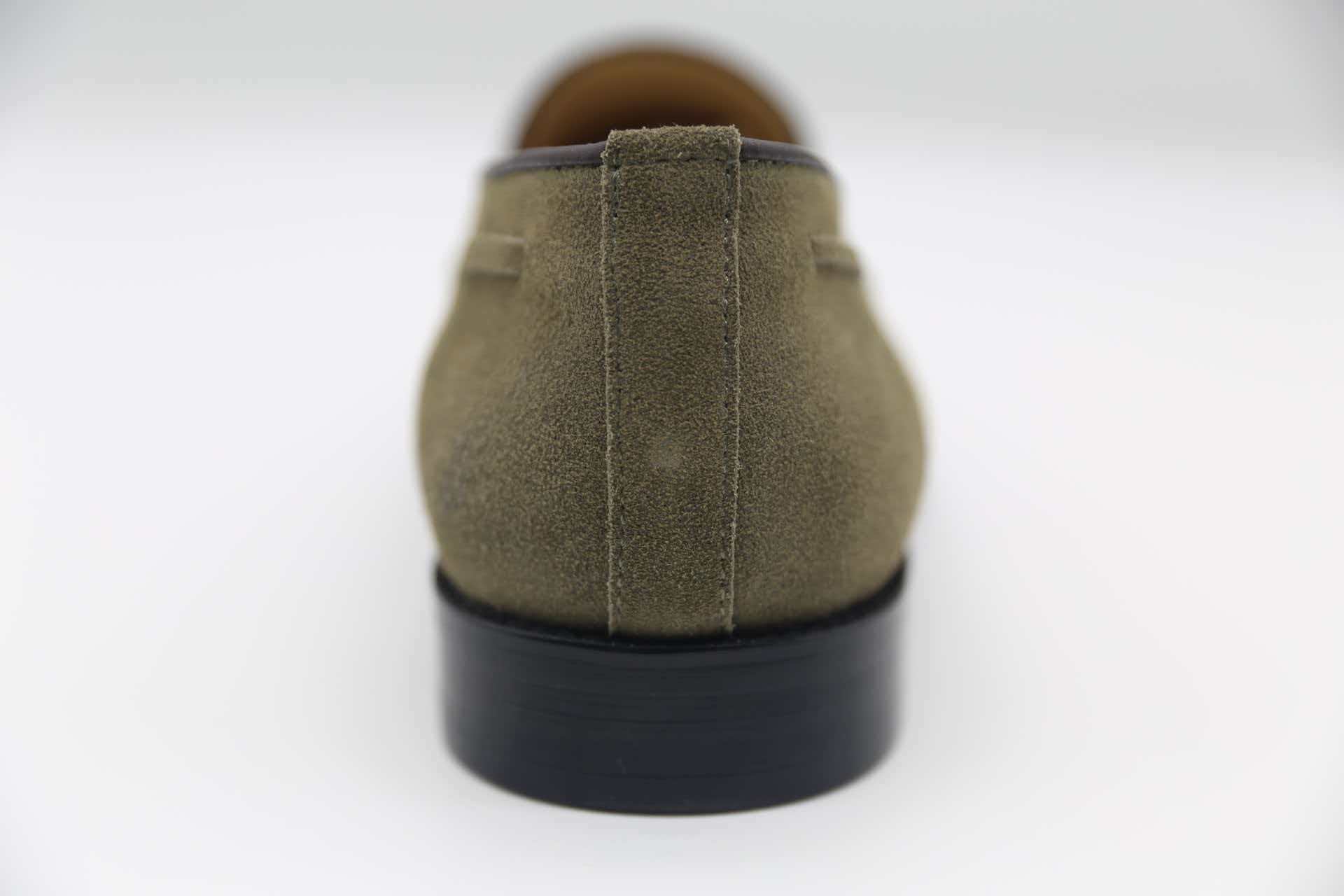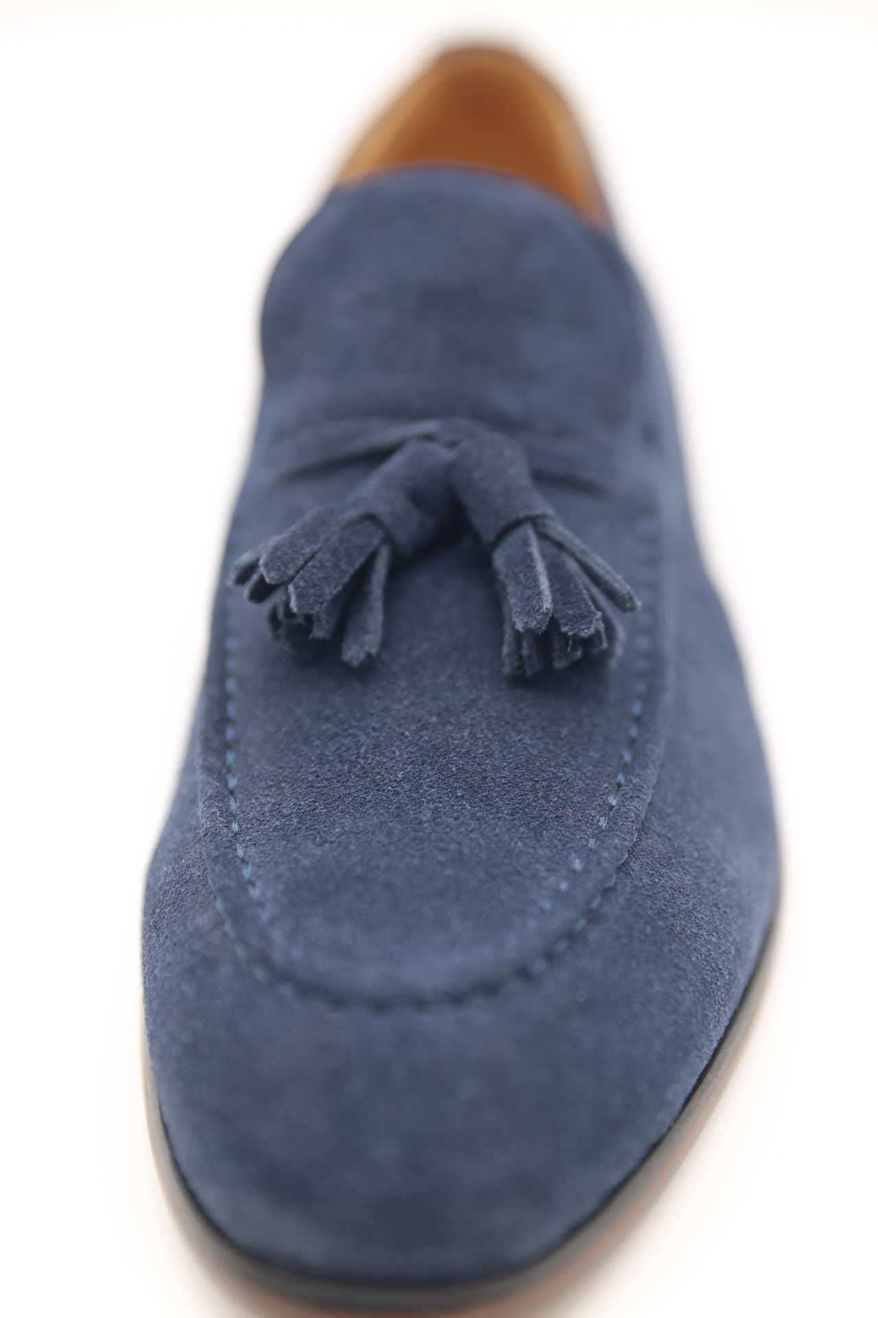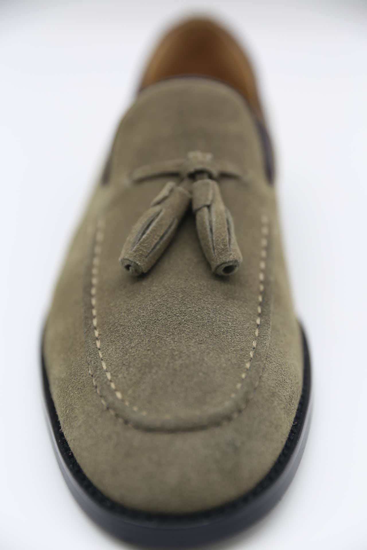 The toe features a tassel, a classic design element of loafers that adds elegance and a modern touch; classic stitched grooves are visible on the sides of the shoe, enhancing the sense of craftsmanship.