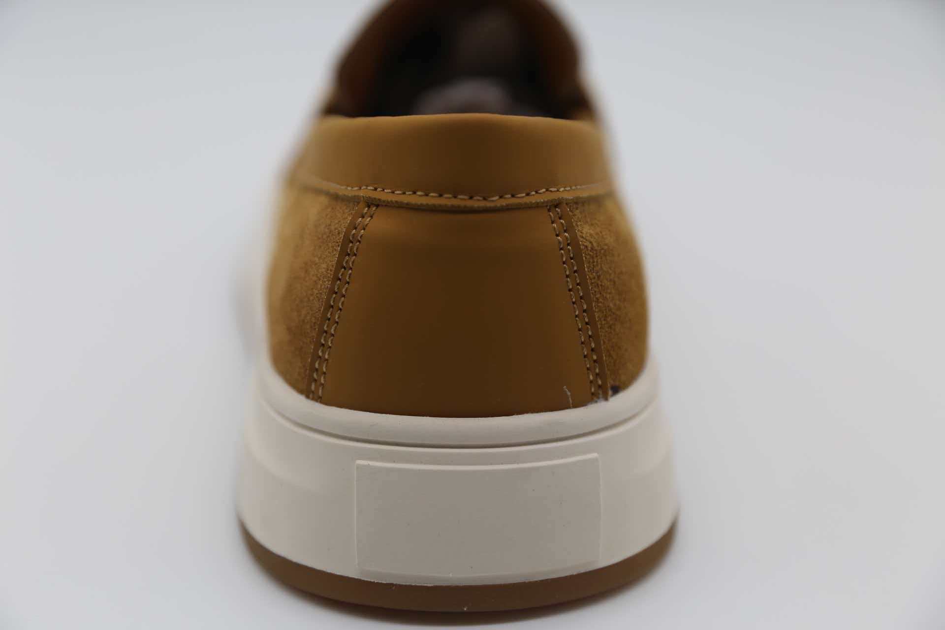 Craftsmanship Highlights: Precision stitching for reinforced durability; leather trim accents enhance the upper’s depth and sophistication; suede-to-rubber outsole construction ensures a seamless fit between the upper and sole.
